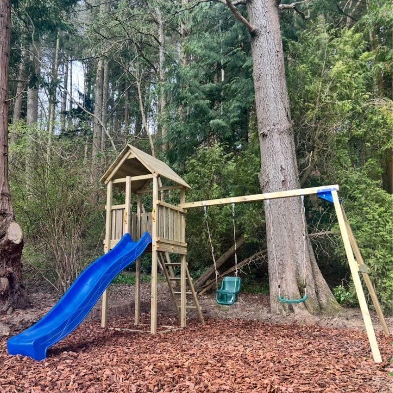 Hidden away in the edge of the woods, you’ll find a play area to keep the children occupied.